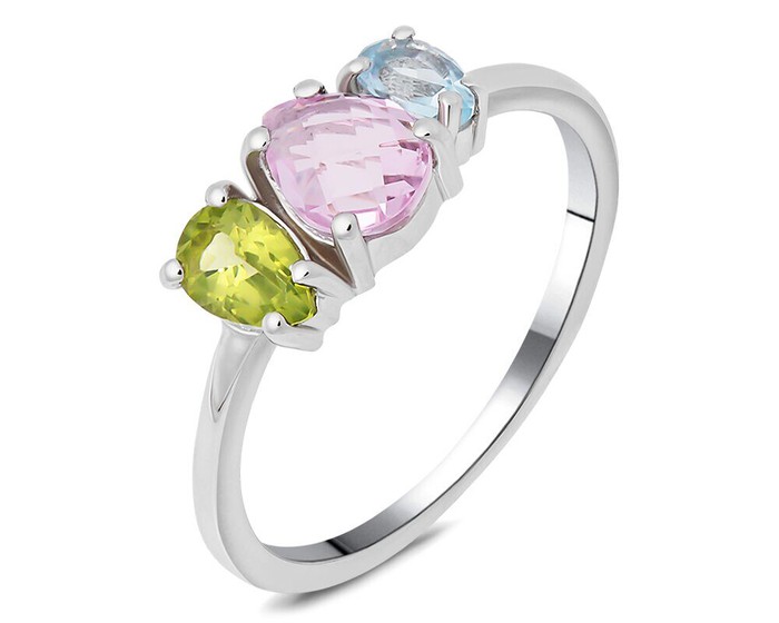Кольцо, арт.656765 Серебро Серебро 925, р. 17, 1,99 гр., морганит , перидот , топаз