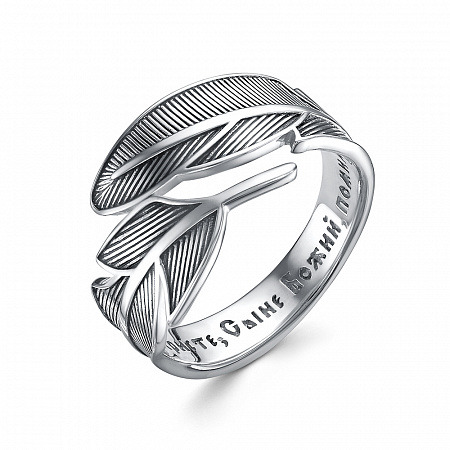 Кольцо Перо Ангела из серебра частично черненое литье