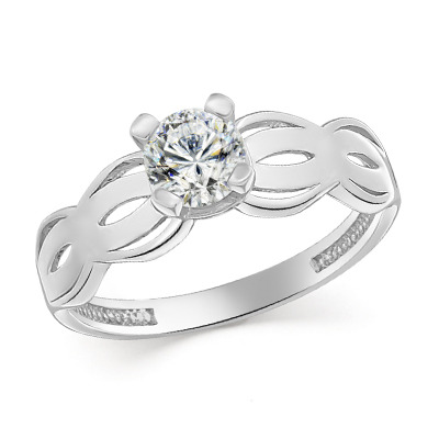 Кольцо с фианитом родированное серебро 925*
