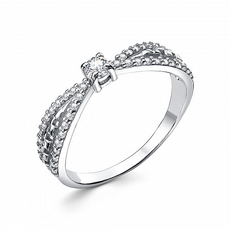 Кольцо с фианитом родированное серебро 925*