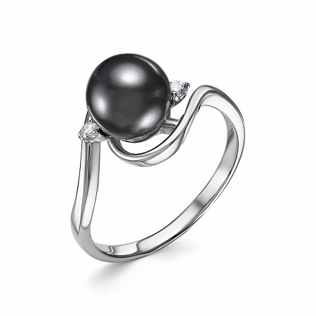 Кольцо с искуственным жемчугом родированное серебро 925*