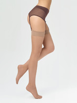 Женские колготки 20 den с эффектом «обнаженности» и эластичным кружевным поясом. Широкий ажурный пояс без силикона не вызывает аллергию, даже при контакте с чувствительной кожей, а также обеспечивает комфортное облегание благодаря специальному эластичному кружеву в составе. Отсутствие шортиков позволяет создать эффект "бесконечных ног", и носить колготки с короткими юбками и платьями. Невидимый усиленный мысок отлично подходит для открытой обуви. Плоские швы и гигиеничная хлопковая ластовица создают дополнительный комфорт.