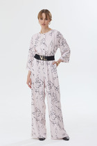 Комбинезон с отрезной планкой по переду, центральной застежкой на петли и пуговицы. По верхней части переда накладные карманы с клапанами. Комбинезон с втачным поясом, пояс присборен на резинку. На передних половинках нижней части комбинезона выполнены накладные карманы с клапанами. Рукав втачной, длинный, с отрезной манжетой.