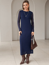 Vilatte Платье из сетки с подкладкой D22.238 темно-синий