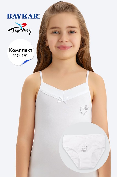 Нежный комплект белья для девочки выполнен с высоким содержанием хлопка. Бельевой комплект для девочки комфортно носить под любую одежду круглый год.