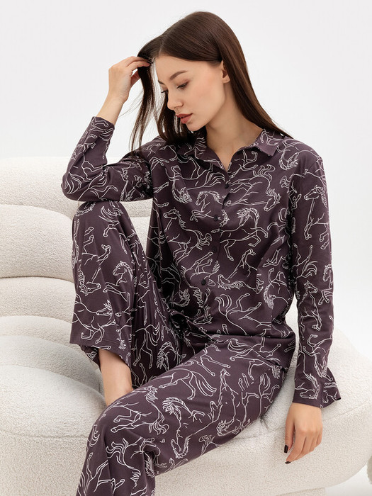 Совместные покупки Курган Женская одежда Пижамы, халаты — Mark FormelleКОМПЛЕКТ ЖЕНСКИЙ (БЛУЗКА, БРЮКИ) 592462 592462 кони на цвете кора 1