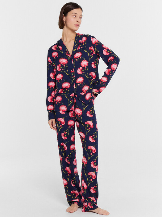 Женская пижама, созданная для максимального комфорта и стиля. Изделие выполнено из вискозного трикотажа - материала, который славится своей мягкостью, гладкостью и способностью "дышать". Вискоза приятно ощущается на коже, обеспечивая непревзойденное удобство в любое время года. Рубашка прямого кроя с V-образным вырезом, длинными рукавами с манжетами и немного спущенной линией плеча подчеркивает элегантность и утонченность. По центру модели застежка на пуговицы, что добавляет практичности и изящества. Брюки длинные, свободные, с эластичной резинкой на поясе обеспечивают идеальную посадку и комфорт, следуя за каждым вашим движением. Эта пижама воплощает в себе идеальный баланс между стилем и уютом. В ней вы будете чувствовать себя максимально комфортно и элегантно одновременно!