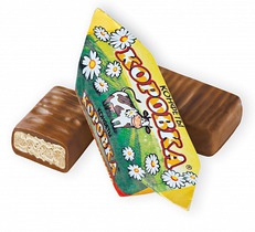Вафельные конфеты «Коровка» – ароматные и хрустящие. Тонкие пластинки воздушных вафель обрамляют тающую начинку с насыщенным сладким вкусом топленого молока. Вафельную «коробочку» покрывает слой нежной молочно-шоколадной глазури. Конфеты буквально тают во рту, раскрывая все грани сливочно-шоколадного вкуса.