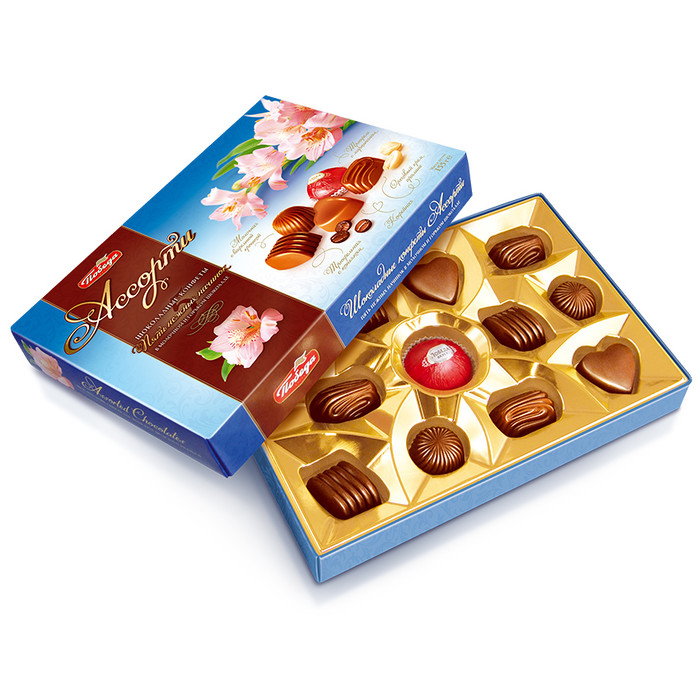 Благородная классика. В этом наборе собраны: трюфели с марципаном, с начинками пралине, шоколадными и трюфельными. Шоколадные шедевры "Ассорти" сделают особенно вкусным любой праздник. Начинки: молочная с вафельной крошкой, трюфельная с коньяком, ореховая крем пралине, кофейная, трюфели с марципаном.