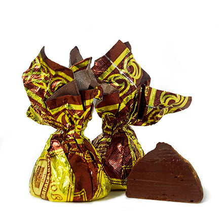 Горький Бабаевский трюфель – роскошное лакомство для любителей темного шоколада. Коренастый купол нежного шоколада с традиционной благородной горчинкой во вкусе покрыт пудрой из натурального какао. Тающая текстура раскрывает все грани шоколадного вкуса и аромата. Роскошный коричнево-золотой фантик делает эти конфеты прекрасным подарком и настоящим украшением чайного стола.