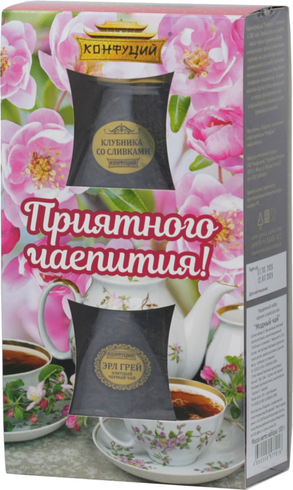 Подарочный набор в яркой праздничной упаковке. В составе набора:1. «Клубника со сливками» - 50г. Состав: чай зеленый байховый крупнолистовой высшего сорта, цветки граната, шиповник, ароматизатор «Клубника со сливками».2. «Эрл Грей» - 50г. Состав: чай черный байховый крупнолистовой высшего сорта, василек, ароматизатор «Бергамот».Отличный подарок на любой праздник близким, друзьям или коллегам!