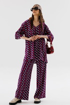 Костюм кофта и брюки. Кофта с рукавами 3/4 на манжете и принтом. Свободные домашние брюки на резинке.