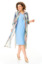Костюм женский из кулирки, состоит из шорт и кофты. Кофта прямая, горловина круглая, окантована, рукав короткий втачной. На полочке печать - кошка, низ обработан швом в подгибку на плоскошовной машине. Шорты свободные, верх на поясе с резинкой, в боковых швах вставки из основной ткани, окантованы.