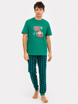 Удобный мужской костюм с шортами из натуральной хлопковой ткани. Приятен к телу и не стесняет движений. Футболка прямого кроя  с V-образным вырезом. Шорты средней длинны с боковыми карманами. Пояс изготовлен на поясной машине.