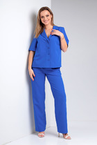Летний костюм, состоящий из шорт и майки. Шорты с рюшей на талии, широким поясом на резинке и завязками, фиксирующими размер талии, укороченная майка свободного силуэта со спущенным плечом и модной термоаппликацией на груди. Рекомендована только ручная стирка.