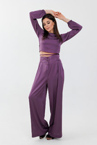 Костюм женский джемпер и брюки из трикотажа. Джемпер прямого кроя с дизайнерской печатью , полочка с накладным карманом.Джемпер с притачными рукавами и манжетами. Брюки женские прямого силуэта, пояс на резинке.Боковые карманы на молниях.По низу брюк обработаны разрезы на молниях.