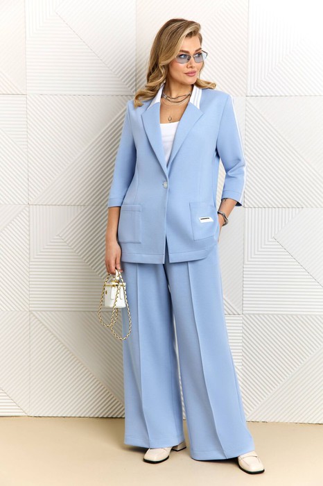 Стильный и мега крутой костюм, выполнен из премиального трикотажа Бифлекс (не скатывается и идеально держит форму). Жакет прямого силуэта, без подкладки. Перед жакета по горловине декорирован трикотажным довязом, что придает модели особую изящность. Жакет с накладными карманами и декорирован пришивным украшением, с застежкой на пуговицу. Рукав длиной 3/4, декорированы пришивным трикотажным лампасом. Брюки прямые, пояс на резинке, в боковых швах с функциональными карманами. Модель костюма стильная и практичная, займет почетное место любимой модели в вашем гардеробе, отлично подойдет для ежедневной носки и работы, удобно носить с кроссовками и любой классической обувью.