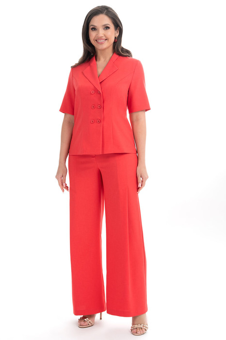 Брюки полуприлегающие по бёдрам и талии, книзу расширенные, на притачном поясе (Р52-56 по боковым пояса на резинке), застёжка типа «гульфик» по среднему шву переда на молнию и петлю, пуговицу по поясу.