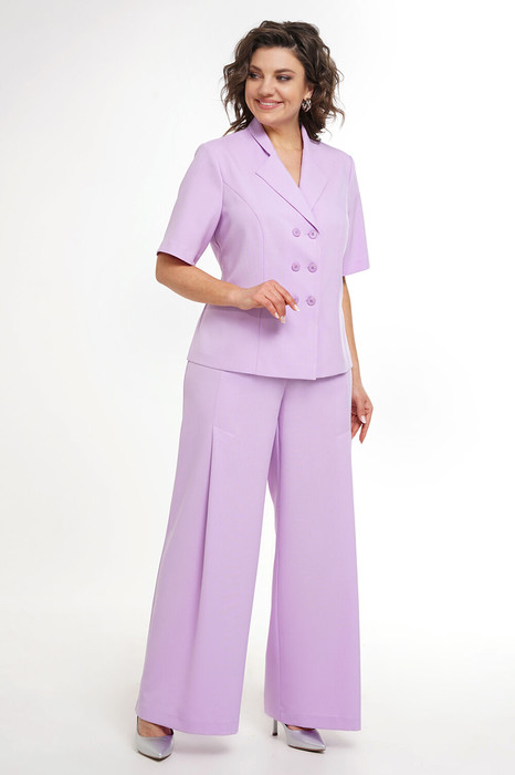 Брюки полуприлегающие по бёдрам и талии, книзу расширенные, на притачном поясе (Р52-56 по боковым пояса на резинке), застёжка типа «гульфик» по среднему шву переда на молнию и петлю, пуговицу по поясу.