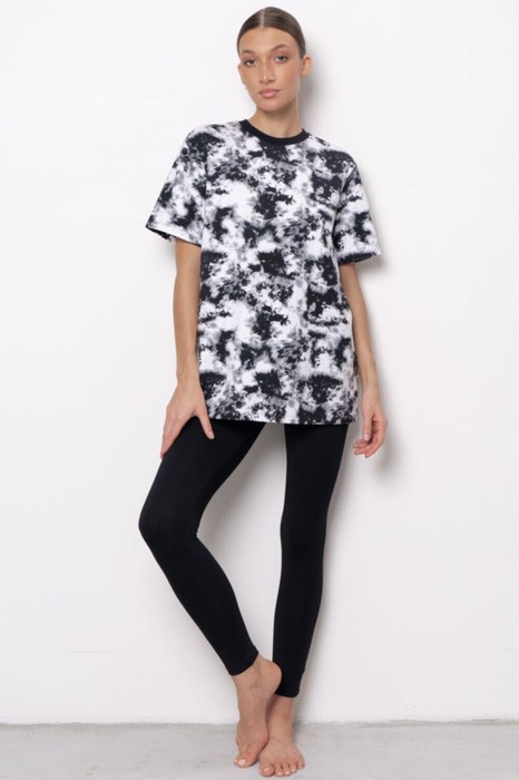 Комплект состоит из футболки с коротким рукавом свободного прилегания и брюк-лосин. Брюки–лосины с высокой линией талии. Эргономичный крой усиливает ощущение комфорта во время движений. Комплект уместен для занятий спортом, отдыха на природе, прогулок.