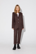 Жакет полуприлегающего силуэта с ассиметричным низом. По переду нагрудная вытачка, переходящая в прорезной карман с клапаном по правой стороне. Двухбортная застёжка на петли-пуговицы.