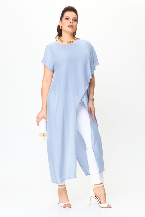 Шикарный женский комплект от бренда Anastasia. Праздничный стильный брючный комплект для женщин отлично подойдет на выпускной, свадьбу или другое торжество.Комплект женский 2-х предметный (туника, брюки) из тонкой и легкой текстильной ткани- лучший выбор на лето. Достаточно дополнить его соответствующими аксессуарами. Предметы комплекта легко будут сочетаться с вещами из Вашего гардероба. Туника прямого силуэта, двойная, с разрезами по центру, ассиметричная со спущенным плечом. В качестве декора - логотип фирмы по горловине. Брюки из ткани тонкий джинс зауженные к низу, пояс на резинке, по бокам карманы. Длина по спинке (50-60) -138 см. Длина брюк: (50-54)-95см, (56-60)-98см.