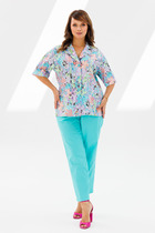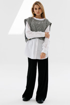 Брюки прямые посадка на талии, на эластичном поясе с резинкой внутри, обработаны боковые карманы. Изюминкой комплекта являются открытые срезы, добавляющие небрежного шика образу. Выполнен в нескольких оттенках.