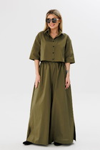 Брюки палаццо на притачном поясе с застежкой-молнией спереди не только подчеркивают вашу фигуру, но и обеспечивают комфорт в течение всего дня. Мягкие складки и широкие штанины делают этот элемент гардероба актуальным для наступившего сезона, добавляя легкости и воздушности вашему образу.