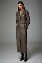 Сочетание строгого силуэта и лёгкой небрежности в цвете «базальтовый гром». Он свободно обрисовывает фигуру, смягчая линии цельнокроеными рукавами. А его главная деталь - фигурный, словно волной очерченный низ, который придаёт статичному крою неожиданную динамику.