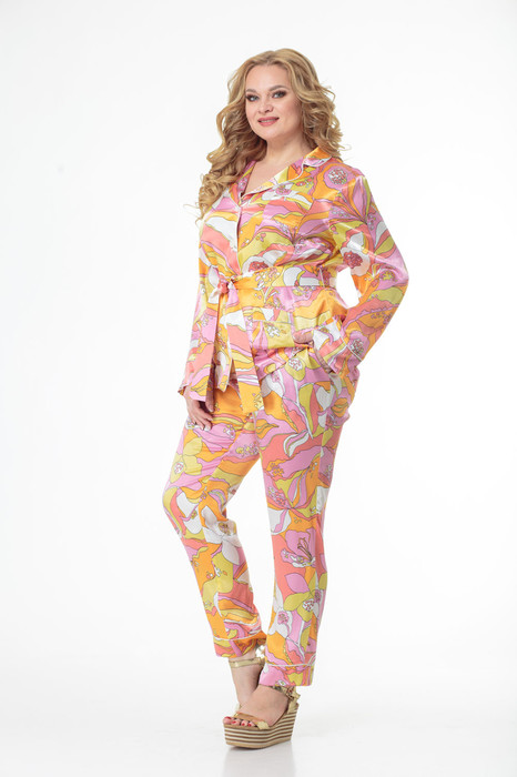 Брючный костюм выполнен из нескольких видов ткани: вискозы, сатина и шелка в разных цветовых решениях и призван создать ощущение комфорта и роскоши одновременно.