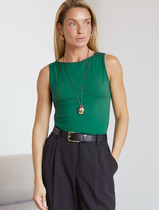 Брюки с высокой посадкой, слегка заужены книзу. Притачной пояс со шлевками и застежкой на молнию и пуговицу, по боковым — вставка из эластичной тесьмы. На задних половинках — вытачки. В боковых швах расположены функциональные косые карманы.