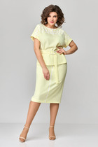 Брюки широкие длинные, с заутюженными стрелками, с высокой посадкой. На передних половинках складки. Пояс притачной с застежкой на молнию, петли и пуговицы, со вставками эластичной тесьмы по бокам. В боковых швах расположены карманы с косым входом.