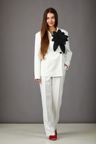 Элегантный женский комплект, состоящий из жакета и брюк, будет уместен в любой ситуации: в офисе или институте, на прогулке или вечеринке.