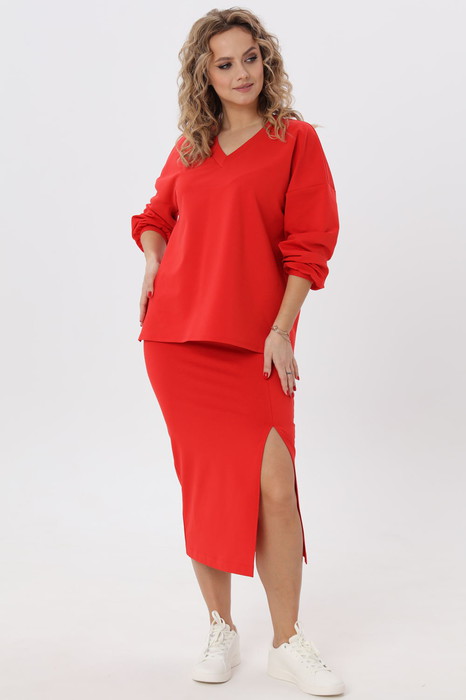 Яркий юбочный комплект для создания модного и стильного образа из однотонного хлопчатобумажного трикотажного полотна будет всегда в тренде и актуален в любом сезоне года. Комплект можно включить не только в повседневный гардероб, но и надеть на свидание или вечеринку. Практичный комплект состоит из удобного джемпера и длинной юбки с высоким разрезом. Свободный джемпер придаст комплекту непринужденный вид, а юбка выгодно подчеркнет фигуру.