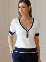 Джемпер с V-вырезом с коротким рукавом из вискозы