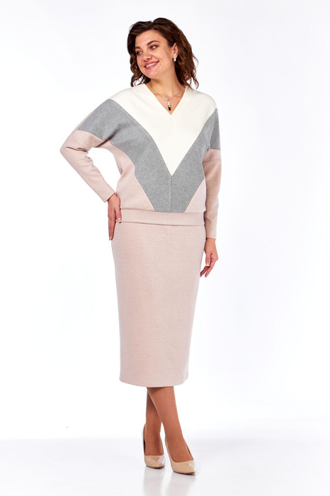 Костюм женский двухпредметный состоит из свободного джемпера и длиной юбки,выполнен из трикотажного полотна под вельвет в мелкий рубчик 3 цветов.