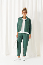 Жакет свободного силуэта выполнен из смесового полотна с содержанием натуральных волокон.