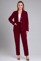 Женский комплект 2-х предметный состоит из жакета и юбки. Жакет классический,с V-образным вырезом, полуприлегающего силуэта с центральной бортовой застежкой на петли-пуговицы. Спереди рельефные швы от плечевого шва, отрезной бочок и карман с втачной листочкой. Спинка с рельефами от плечевого шва. Рукав втачной, двухшовный, укороченный. Перед жакета на подкладке. Длина рукава 48 см, длина жакета по спинке 59 см. Юбка прямого силуэта, верхний срез юбки обработан обтачкой, заднее полотнище со средним швом, застегивается на потайную молнию. Шов переходит к низу в шлицу. Юбка по переднему и заднему полотнищу с кокеткой и вертикальными рельефами, швы отстрочены в цвет юбки. Длина по боковому шву 70 см. Юбка на подкладке.