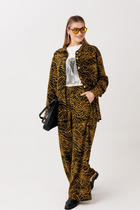 Костюм женский трикотажный, двухпредметный. Состоит из кардигана и юбки. Кардиган на подкладке с функциональными карманами по переду, застежка молния, по низу изделия кулиска со шнурком, капюшон украшен боа. Юбка полуприлегающего силуэта на трикотажной подкладке, пояс на резинке, в боковом шве разрез.