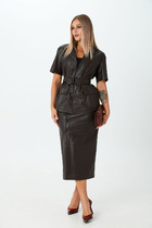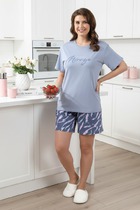 Костюм женский полуприлегающего силуэта, джемпер и юбка. Юбка выполнена из блестящей тани, с отрезной кокеткой, разрезом и каррманоми в боковом шве. Джемпер с цельнокроенным рукавом и разрезами в боковых швах