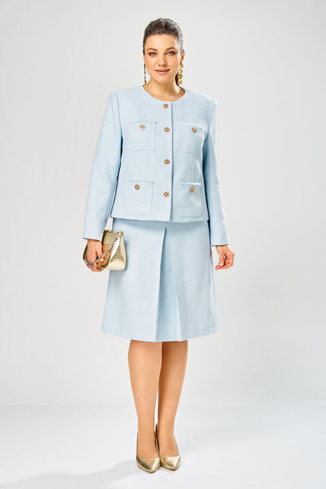Элегантный женский костюм, выполнен из жаккардовой ткани, состоит из юбки и жакета.