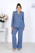 Элегантный женский костюм выполнен в классическом стиле, состоит из жакета и брюк.