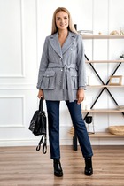 Жакет свободного силуэта с центральной застежкой на петлю и пуговицу. Горловина с отложным лацканом и воротником пиджачного типа. По переду обработаны прорезные карманы с клапаном и обтачками. На спинке в центральном шве понизу шлица. Рукава втачные двушовные, в переднем шве понизу шлица с отделочными пуговицами. Жакет на подкладке.