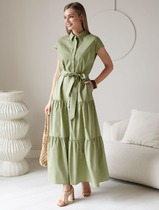 Комплект женский состоит из рубашки и платья. Платье длинное, свободного кроя. Спинка со среднем швом, разрезом, талиевыми вытачками, 2-мя складками по низу. Перед с нагрудными вытачками и складками по низу. Карманы обработаны в боковых швах. Низ платья по бокам собран  на резинку. Рубашка совбодного кроя с центральной застежкой на 5 петель и пуговиц. Спинка с округлым подрезом и отделкой в ивде надписи. Перед по низу фиксируется кулисой и завязками. Воротник на стойке с обработанной горловиной . Рукав втачной, одношовный со спущенной линией плеча. По низу рукава манжет с застежкой.