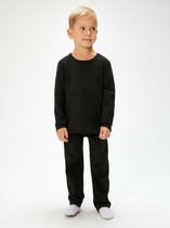 Костюм для мальчика из трикотажного полотна "кулирка" в комбинации двух видов: гладкокрашенного красного цвета и с набивным тематическим рисунком на сером фоне , состоящий из футболки и брюк. Футболка - классического силуэта, свободного покроя, с приспущенным плечом, с втачными рукавами длиной до локтя, горловиной овальной формы, обработанной втачной планкой и принтом в центре переда. По шву втачивани я планки настрочена декоративная (5-ниточная) отделочная строчка нитками контрастного цвета Подгибка низа рукавов и изделия так же выполнена с применением декоративной отделочной строчки. Брюки выполнены из полотна с набивным темкатическим рисунком, длинные, умеренной ширины, прямые, с эластичной тесьмой по талии.