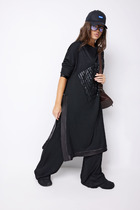 Размер 50: Туника: ОГ-128, ОТ-130, ОБ-130, ширина плеча со стойкой-23, длина рукава втачного-44, ширина рукава на уровне ОП-19,5, длина изделия спинки по центру-115. Брюки: ОТ в собр.- 72, ОТ в раст.- 106, ОБ-114, ширина изделия по низу-29, длина изделия по боковому шву с поясом-109