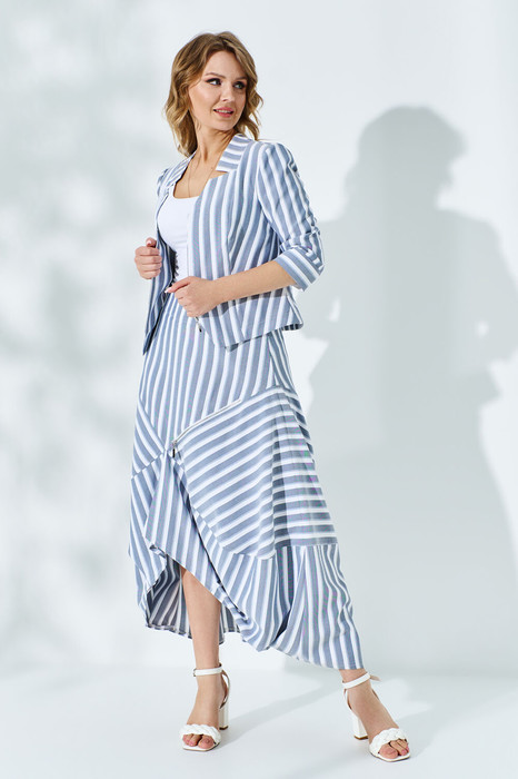 Костюм женский Юбочный 2х мпедметный состоит из жакета и юбки, выполнен из Костюмной ткани. Жакет полуприлегающего силуэта, с втачным рукавом 3/4, по низу рукава манжет, горловина со стойкой, застежка- молния. По переду и спинке жакета расположены выточки и рельефы. Юбка женская выполнена в стиле "бохо", в силуэте "тюльпан" с отрезными деталями пои защипами по низу. Изделие на притачном поясе кокетке и застежкой- потайная молния.
