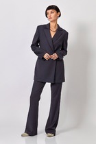Костюм женский 3х предметный состоит тз брюк блузы и жилета, блуза выполнена из хлопковой ткани, полуприлегающего кроя , горловина воротник на стойке, рукав втачной с высокой манжетой по низу рукава, застежка - планка с петлей пуговицей, низ фигурный. Жилет свободного кроя, укороченный, воротник отложной с лацканами, по переду жилета съёмный пояс, с застежкой петли -пуговицы. Брюки средней посадки, прямого кроя на притачном поясе с резинкой, в боковых швах имеются карманы, застежка петля- пуговица и молния на гульфике.