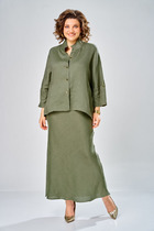 Костюм женский двойка из джинса, состоит из джинсовой рубашки и брюк( джинсы). Рубашка свободного кроя, на полочке расположена кокетка и накладные карманы с клапанами декорированные бахромой, воротник отложной на стойке, рукав втачной длинный низ рукава с манжетой, спинка с отрезной кокеткой. застежка- петля-пуговица на планках по переду. Брюки - клеш слегка расширенные к низу на притачном поясе, в боковых швах расположены карманы, на задних полотнищах брюк накладные фигурные карманы и кокетка. Застёжка молния на гульфике и петля-пуговица.