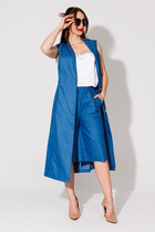 Свободный блузон цельнокроеного покроя на подкладке из трикотажного х/б полотна с круглым вырезом горловина и слегка присборенным низом-баллоном.